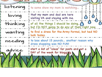 Funny how other people might come to visit their daughter in the DC area and want to be tourists- you know- see the city. My parents want to see my LIFE! My house, my work, my grocery store! Seriously! It is so nice. They don’t want razzle-dazzle, they just want to be with me and my husband! It has been a nice relaxing week of just being together.