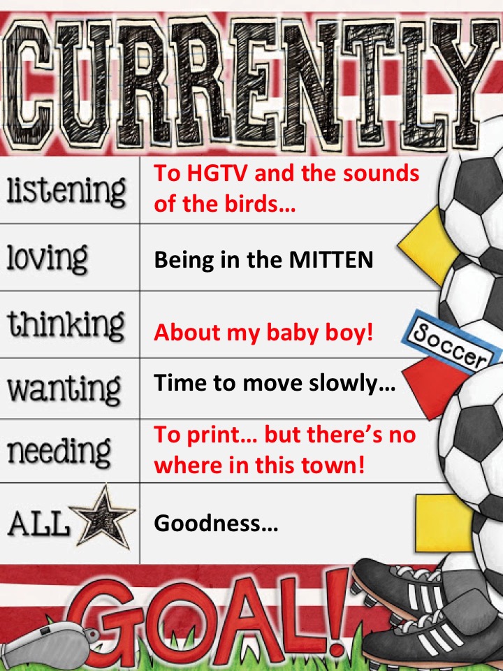 Needing: I have a bunch of material to prepare for my summer trainings on Literacy Work Stations for teachers across the state of Texas… I have the files ready… I just need to print… but there is nowhere to print in this town! I’m in a small town Up North in Michigan… I have time to do it later… but I just want to do it NOW and have it off the to-do list. Oh well. I will just have to wait.