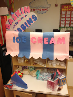 First up is a Pre-K classroom with a restaurants theme! I have seen LOTS of great pretend play scenes, but I have never seen a Baskin Robbins! I wanted to stop and play in this ice cream shop.