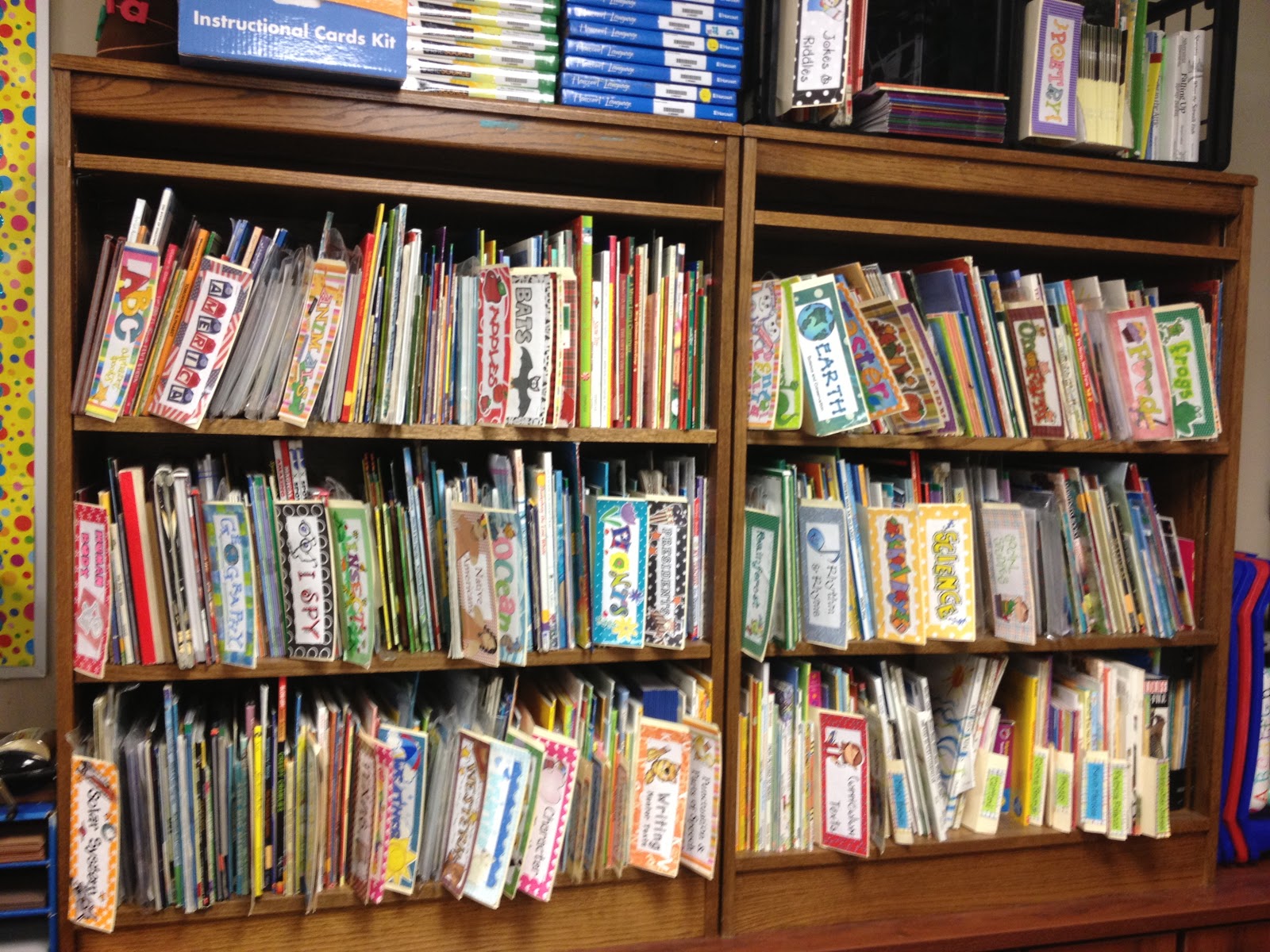 I tried to save the BEST for last. All of my books are in my basement in plastic tubs, but this makes me want to dig them out and get a better display! There are books that are in the classroom library for students to have access too and those are in cute tubs, but what about OUR books? The ones we use certain months or for certain lessons? Doesn’t this make you happy? Don’t you want to do this for yourself?