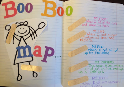 Kids love to talk about Boo Boos and all kids have had them! “When I fell off my bike!” or “When I fell off the swing” etc. So let them list it out. You can get band aids at the Dollar Tree (I just found this stickers on a roll for $2.00 so I bought them).